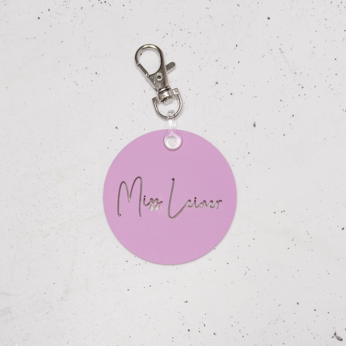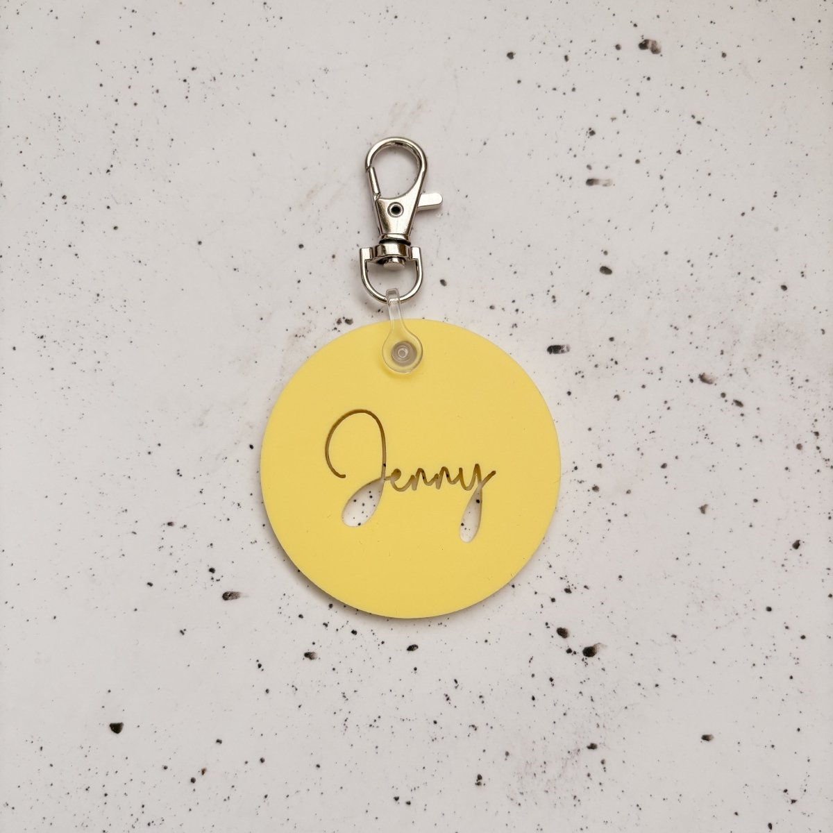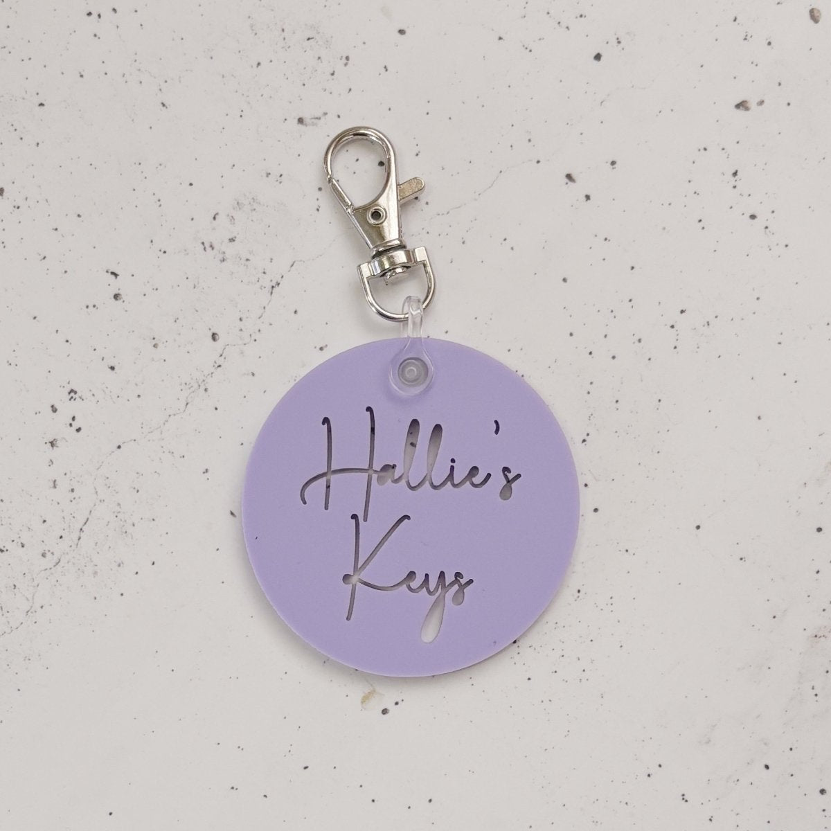 This customised keyring comes in 3mm thick acrylic and is 60mm in diameter, with a silver clip attachment. Please note shorter wording will appear on one line, with longer wording on two lines.