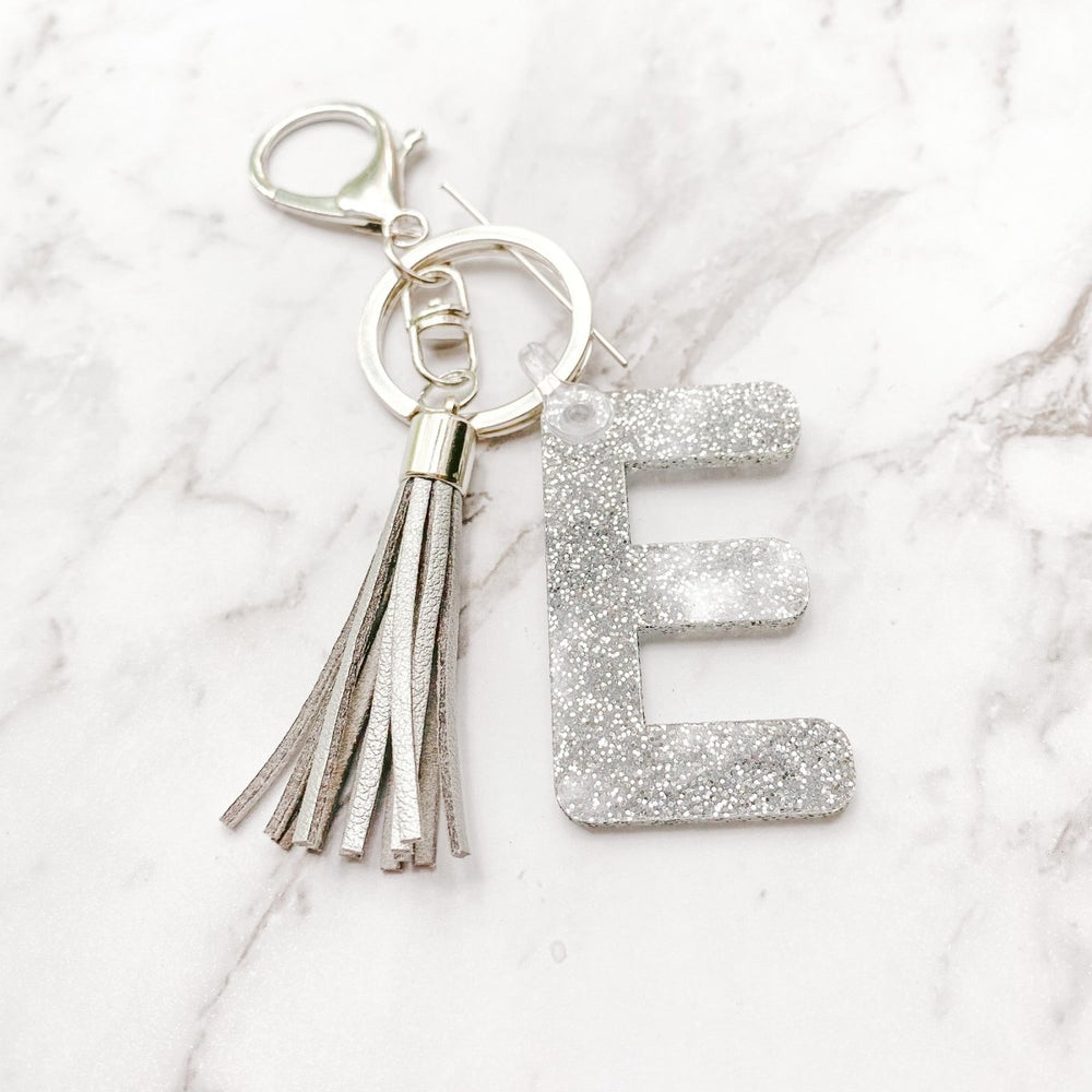 Glitter Initial Keyring in Gold or Silver