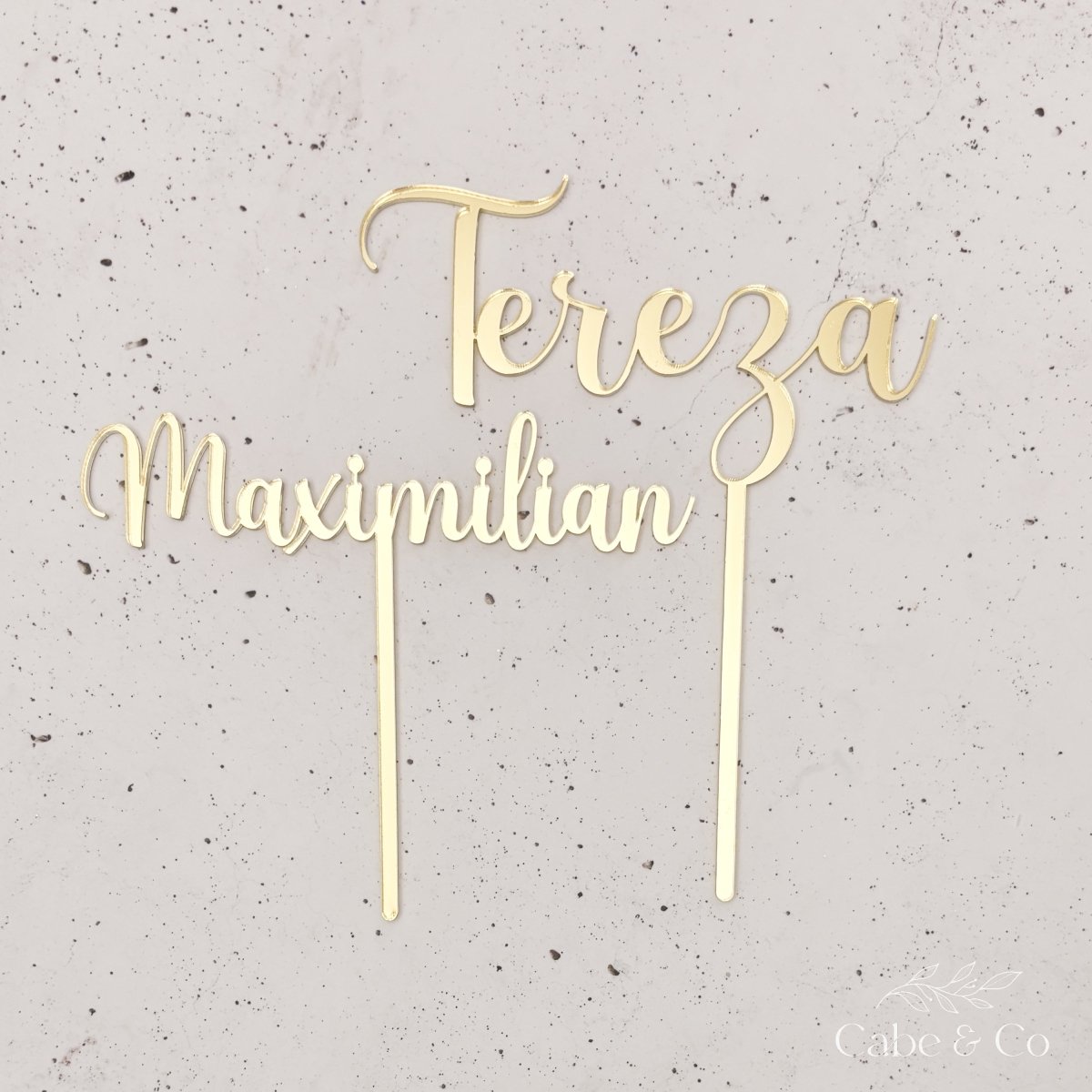 • Name Cake Topper - 14cm in width with 8-9cm stem & measuring 3mm thick.