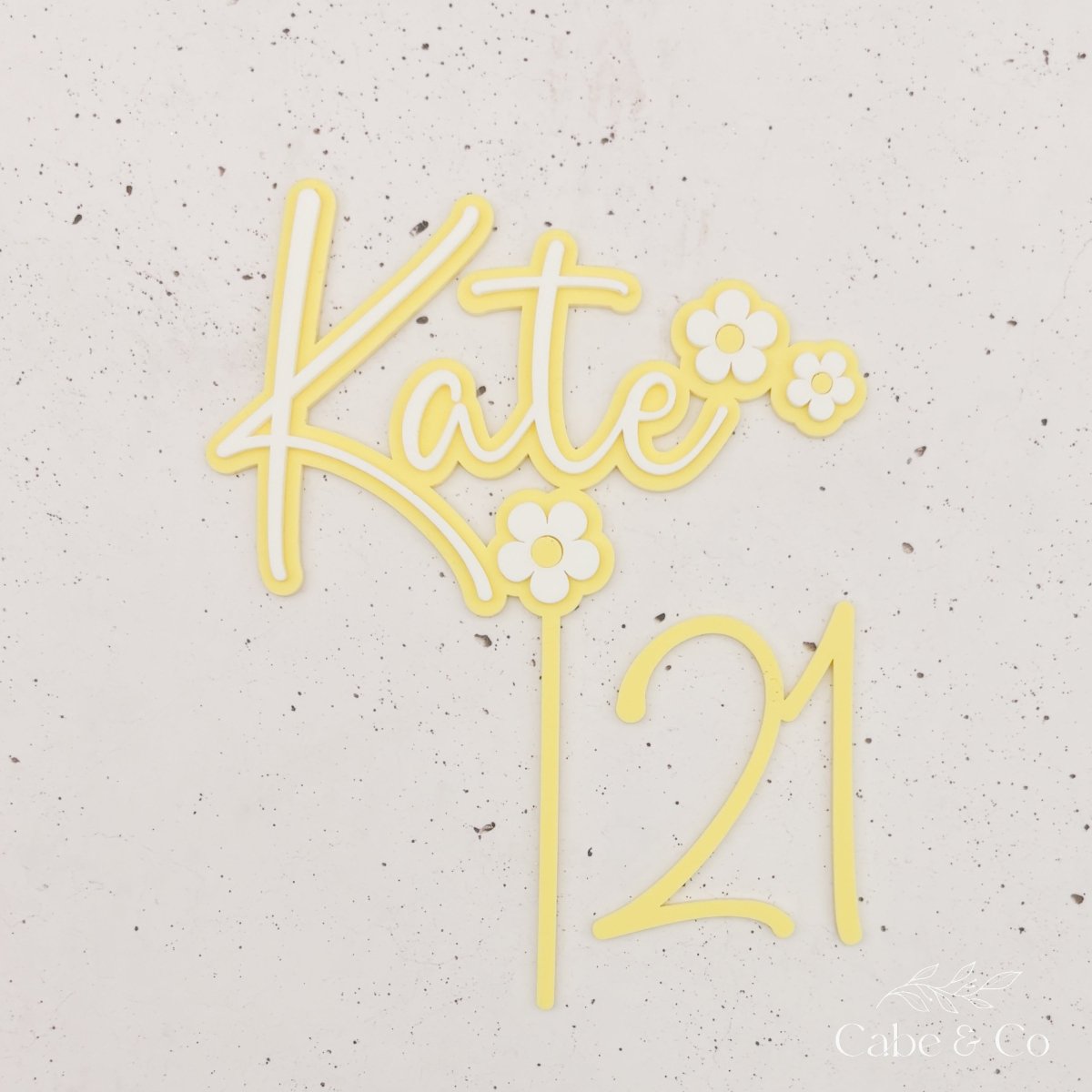 Acrylic cake toppers are food safe. Wooden toppers, as with florals, need to have the stem wrapped in film to make them food safe. This also means wooden toppers are single use only.